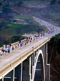 Named "Best Marathon in North America" by The Ultimate Guide to Marathons, the Big Sur International Marathon continues to sell out earlier and earlier each year and, as a major destination marathon, draws entrants from all over the world. On their way from Big Sur to Carmel's Rio Road, runners wind through majestic redwoods and past Pacific Ocean views. Classical music—including a grand piano poised on Bixby Bridge—greets marathoners at each turn, providing inspiration that has been likened to a spiritual experience.